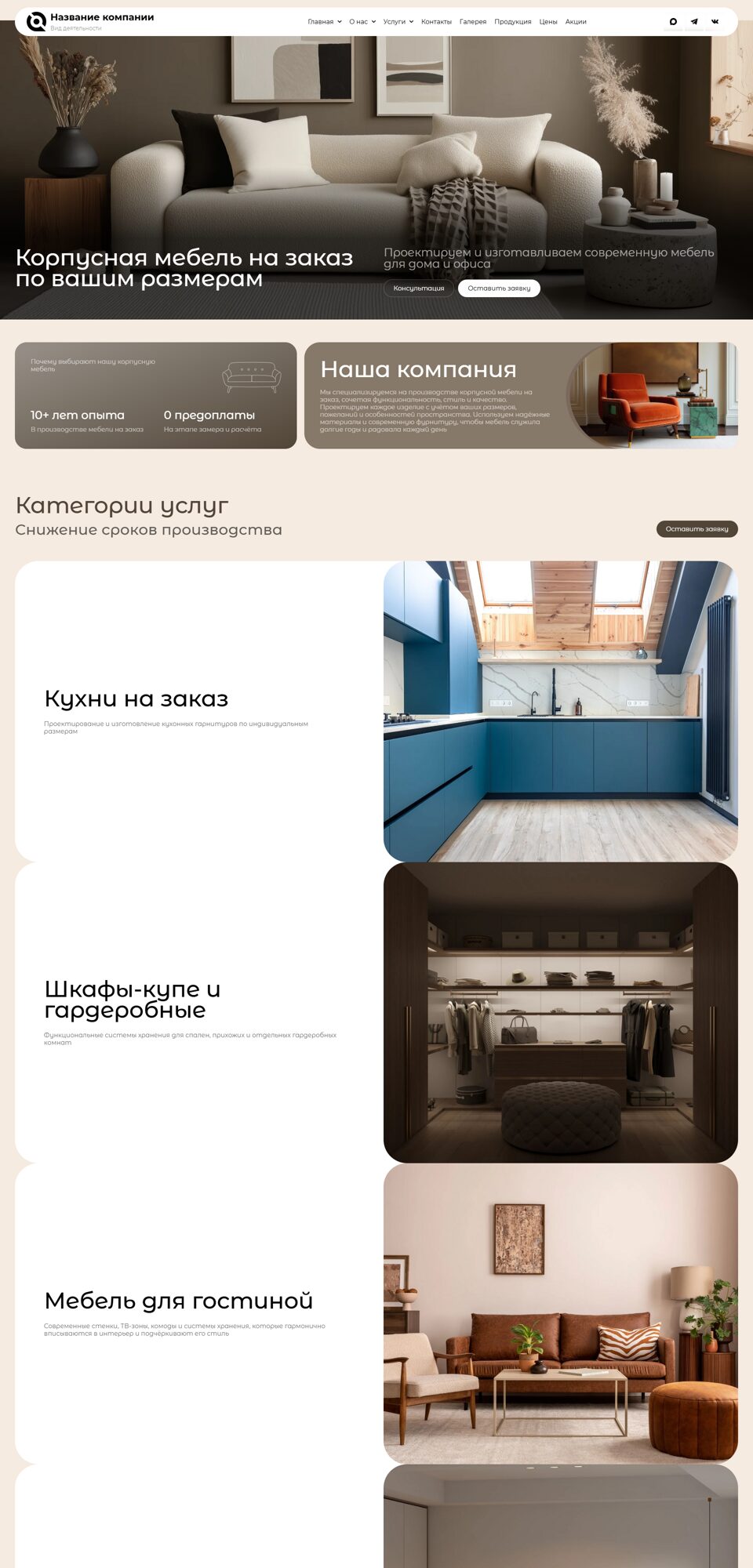 Дизайны сайтов в категории: Мебель корпусная, изготовление мебели